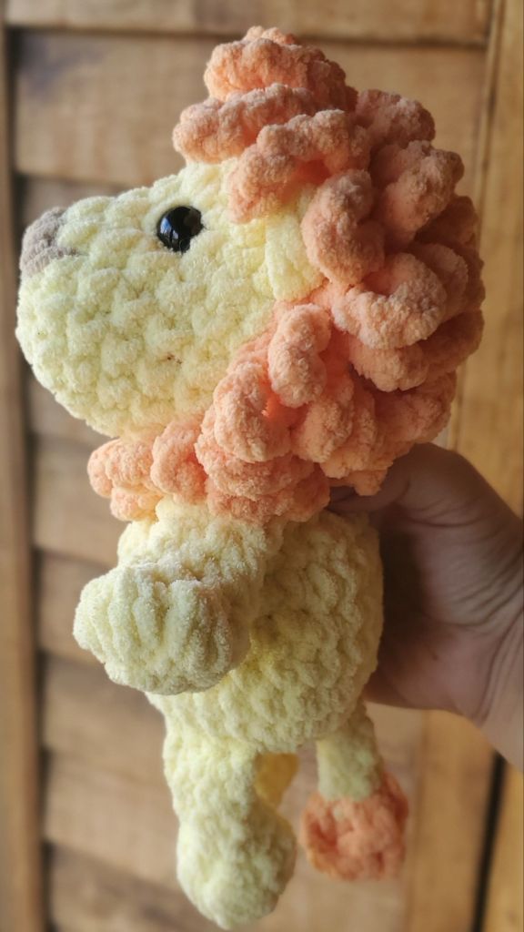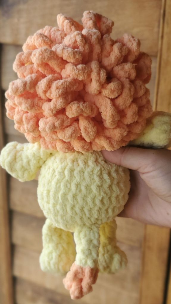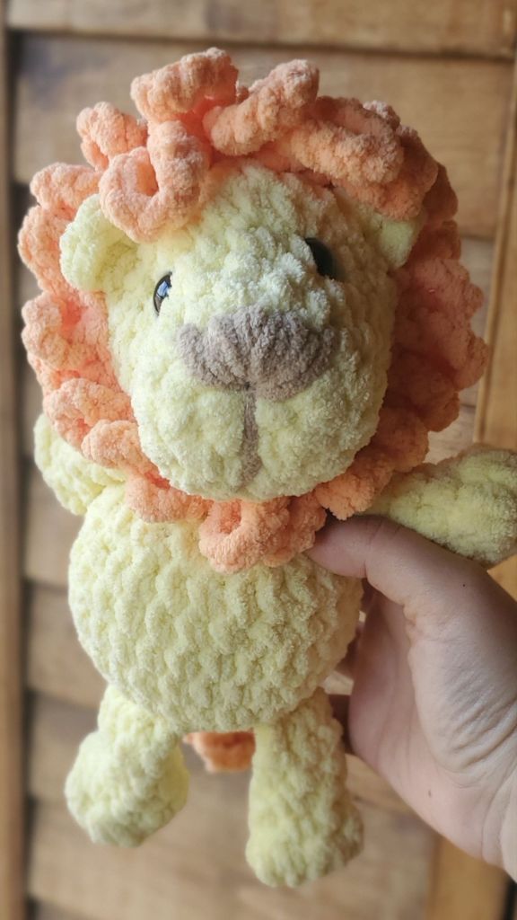 On the topic of using up my yarn stash, here’s a brightly colored lion I made. The orange color is, unfortunately, being discontinued by Bernat (it made a great goldfish color too). I was able to complete two of these lions with enough orange for the tail a lioness. The lioness is in a cute purple dress and she will be up for grabs soon (not pictured) along with the male lions. I hope to make some more in different colors soon.