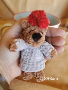 When I was young I got to tour the Celestial Seasonings facility in Colorado while visiting some family. I enjoyed the tour (especially the crystallized sugar stir which I promptly ate instead of stirring into my tea) and ever since then the Sleepy Time Bear has had a nostalgic place in my heart. I decided not long ago to attempt to make one as a snuggler but also one that was small enough to hold in my hands. And here he is! I have yet to get a photoshoot with him with a Sleepy Time tea box but in due time. 🐻