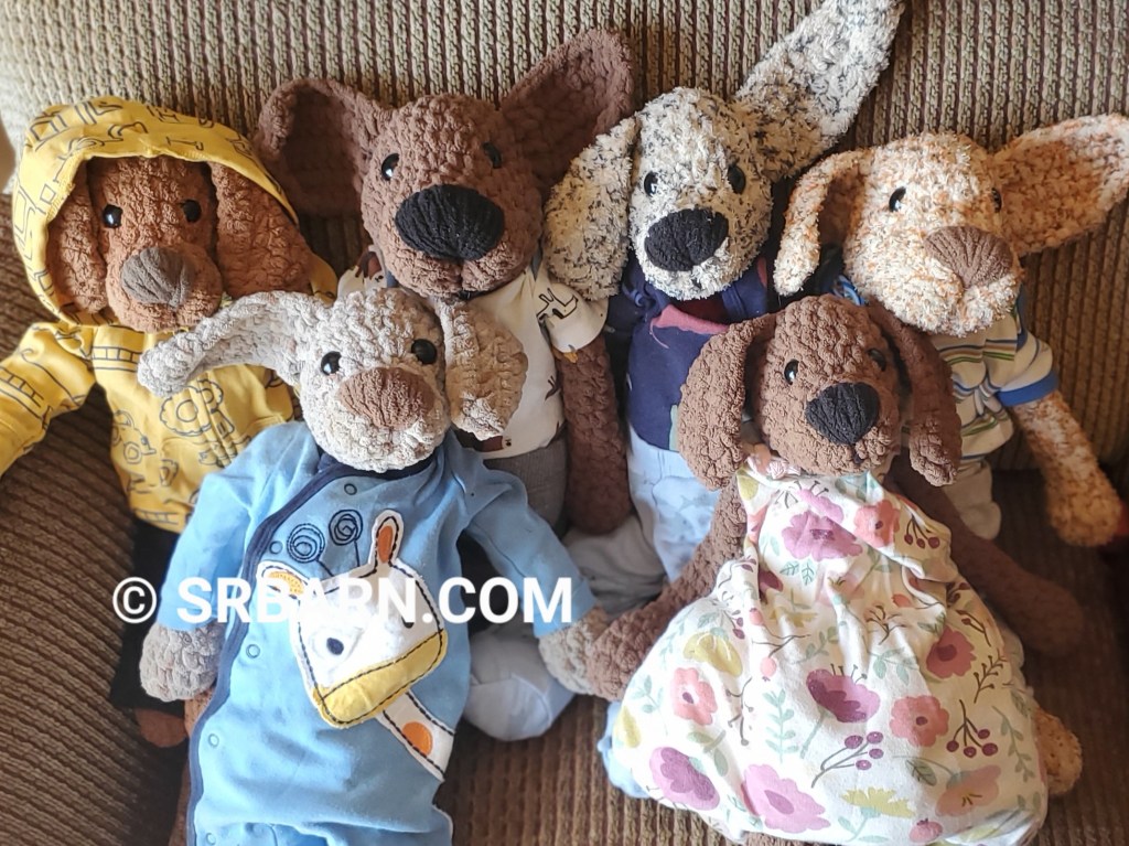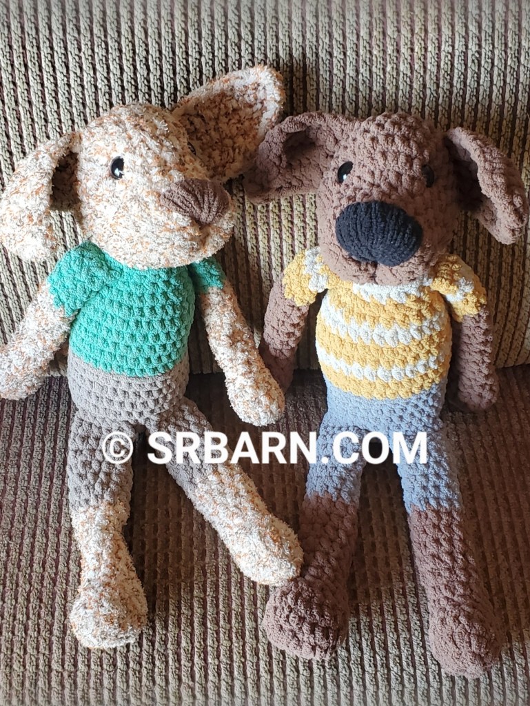 All three versions of the Big Dogs are approximately 18″ long with ragdoll style limbs. They are made with a soft, polyester blanket yarn making them hypoallergenic. Each is specially made and no two are exactly alike. They are each handmade, heirloom quality, customizable, and better yet they are machine washable and dryable.