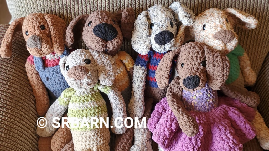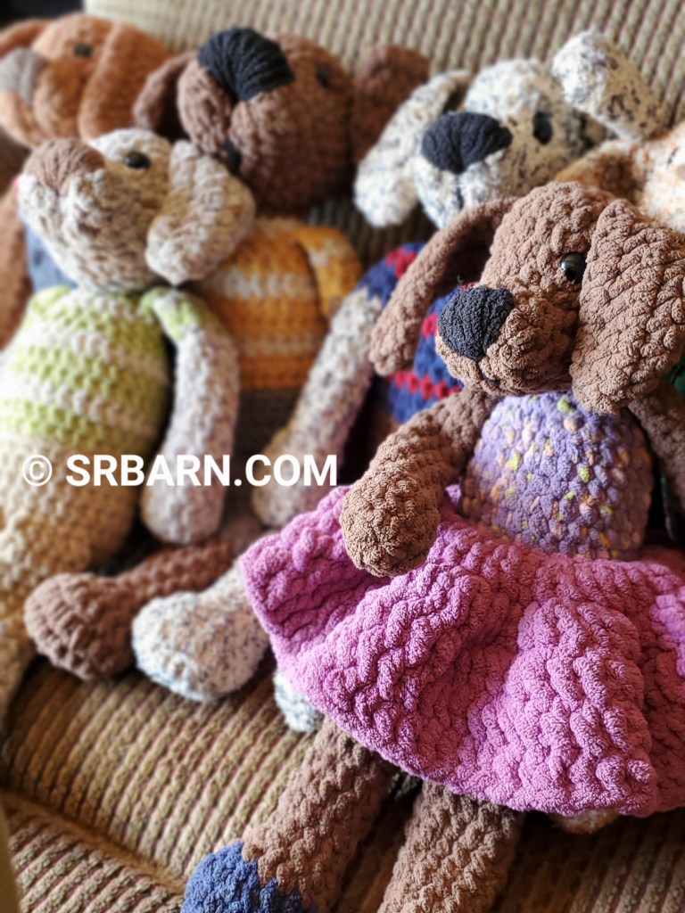 They all started at home. I had crocheted a large doll for my daughter’s third birthday and by the time her brother was old enough he loved dragging it around (and taking it from her). I decided I would make him one for his second birthday but this one needed to be an animal. With our love of dogs it didn’t take long to decide on the animal and thus, the first Big Dog was created (pictured right).