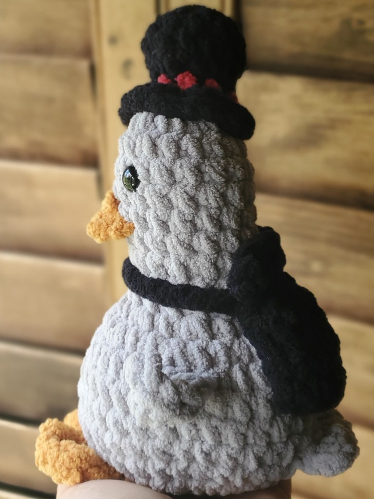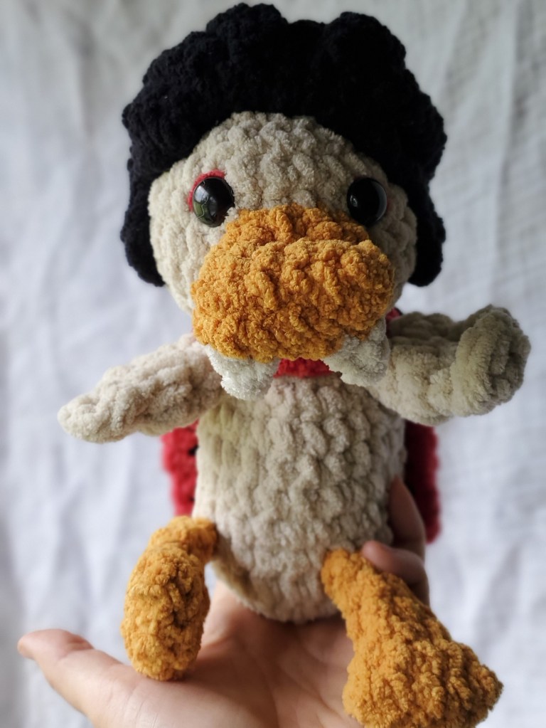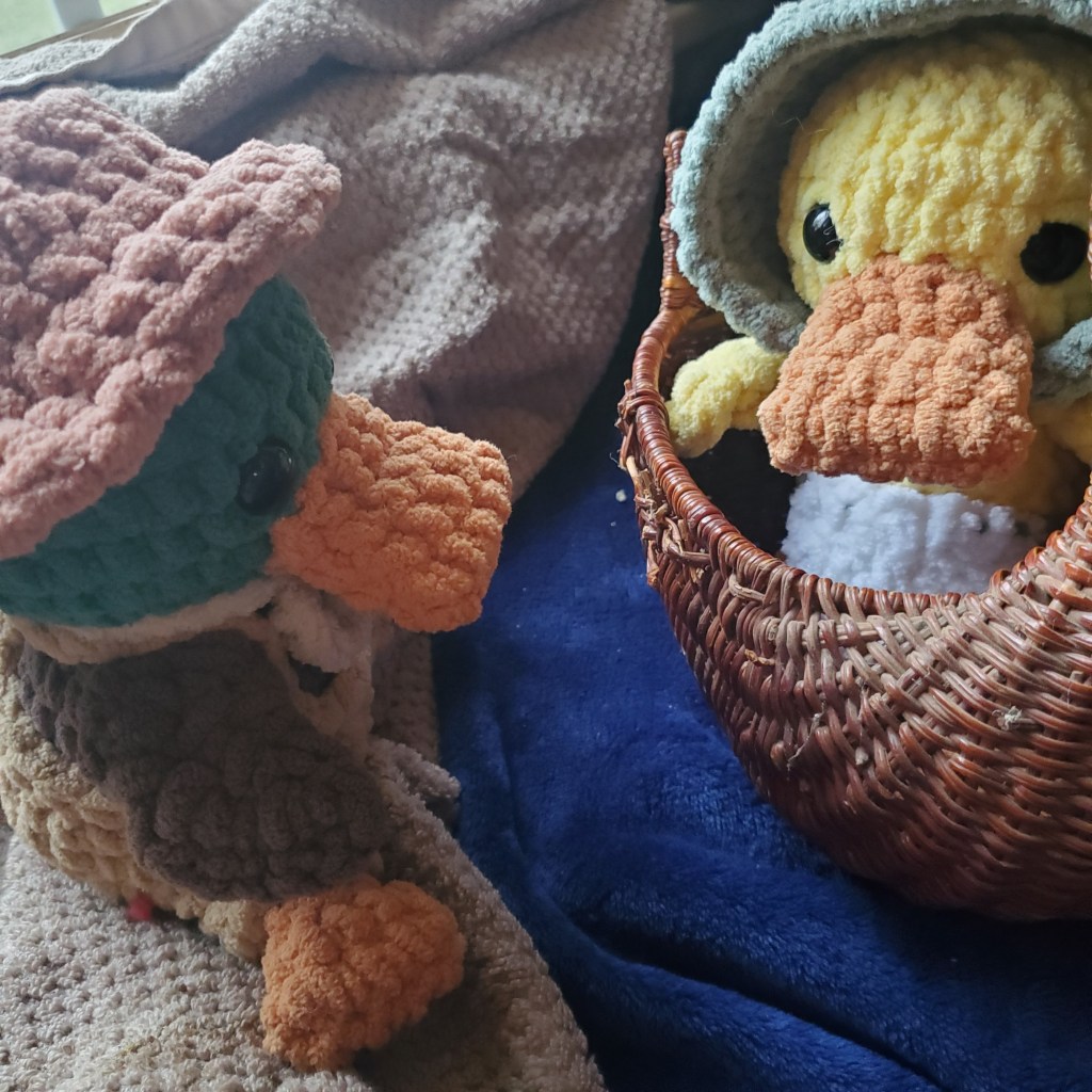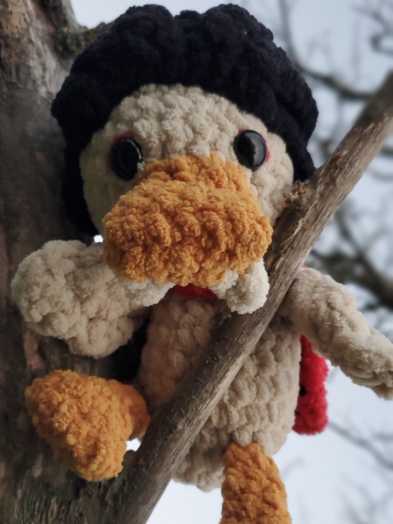 He was abandoned as a gosling in a squash patch in the woods. Raised by the Squash he eventually became their leader. He regularly tends to them, pruning and removing debris from their patch, while keeping an eye our for the Squash Monsters that live in the forest. He once found a rare baby Squash Monster roaming around alone and has since taken it under his wing as a pet.